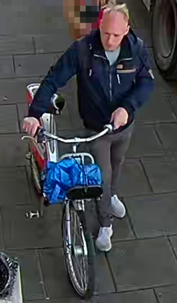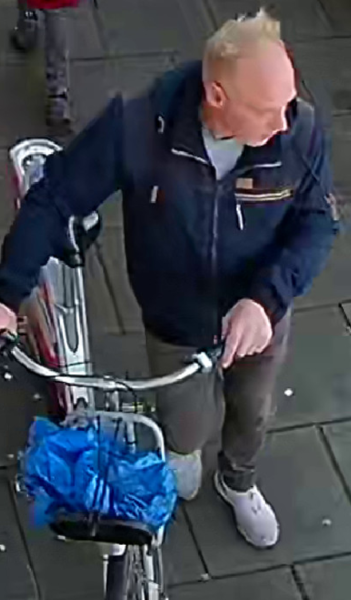 Mężczyzna jest w wieku około 30-40 lat, ma około 175-180 cm wzrostu, jest normalnej budowy ciała, ma włosy koloru jasny blond, widoczną łysinę na głowie. Ubrany był w kurtkę koloru granatowego z kapturem zapinaną na suwak, szare spodnie jeansowe, jasne buty sportowe.
