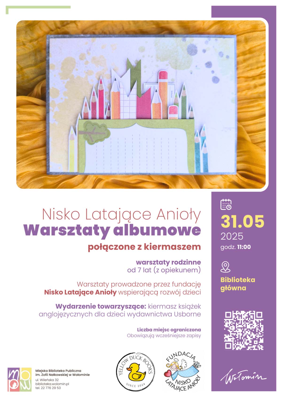 Zapraszamy do udziału w rodzinnych warsztatach albumowych, prowadzonych przez Fundację Nisko Latające Anioły, połączone z kiermaszem książek anglojęzycznych w Miejskiej Bibliotece w Wołominie