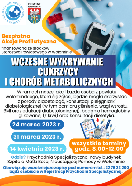 Szpital Matki Bożej Nieustającej Pomocy w Wołominie organizuje bezpłatną Akcję Profilaktyczną pod nazwą: „Wczesne wykrywanie cukrzycy i chorób metabolicznych.
