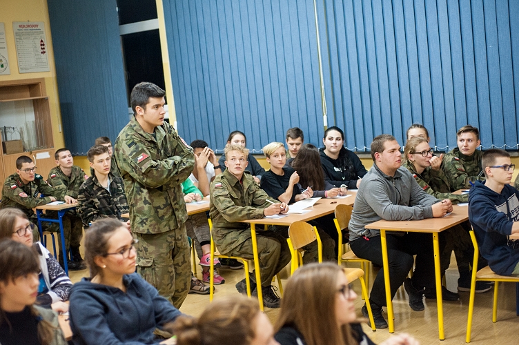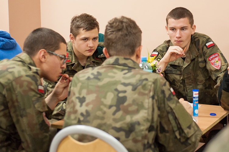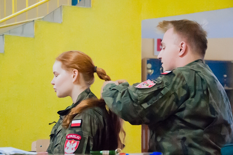 Na trzy dni budynek Szkoły Podstawowej nr 2 im. Jana Kochanowskiego w Ząbkach (dawne Gimnazjum nr 2) zamienił się w wojskowe koszary. W dniach od 6 do 8 pażdziernika br., w ramach zorganizowanego przez  JS1533 Weekendu Strzeleckiego, Strzelcy i kandydaci z Oddziału Ząbki im. Por. Ludwika Tulińskiego oraz z Jednostki Strzeleckiej 1920 Warszawa-Targówek im. Bitwy Warszawskiej ’20 r. i Jednostki Strzelecki 1939 Oddział Wołomin im. kpt. Stanisława Brykalskiego uczestniczyli w zajęciach terenowych i dydaktycznych. W programie znalazły się m.in. teoria służby wartowniczej  oraz teoretyczne i praktyczne szkolenia z zakresu zabezpieczenia kompanii i szyków patrolowych. Zajęcia praktyczne odbywały się na terenie Drewnicy, gdzie pod czujnym okiem Mirosława Sobieckiego, komendanta JS1533 i instruktorów, Strzelcy i kandydaci ćwiczyli m.in. maskowanie, musztrę i poruszanie się z bronią. Nie zabrakło też nocnych alarmów i marszu kondycyjnego oraz osławionej wojskowej grochówki. W sobotę na dwie godziny, do Strzelców dołączyły także ząbkowskie Orlęta, które obserwowały jak ich starsi koledzy szykują się do nocnych manewrów. Główną atrakcją dla najmłodszych była możliwość wzięcia do rąk atrap broni i wspólne ćwiczenie postaw strzeleckich. W niedzielę, 8 października uczestnicy weekendu strzeleckiego wzięli udział w mszy świętej w kościele p.w. Miłosierdzia Bożego w Ząbkach.