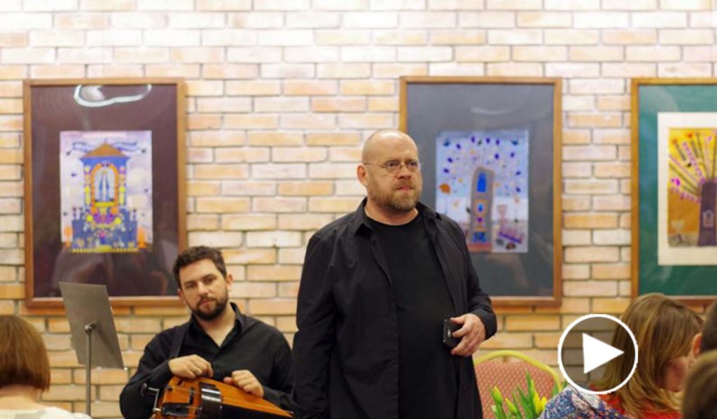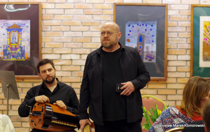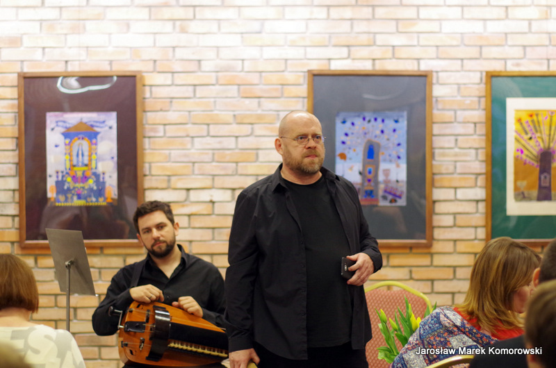 Adam Strug wraz z Hipolitem Woźniakiem grającym na lirze, zachęcając publiczność do wspólnego śpiewu zaprezentowali nabożne i świeckie pieśni kurpiowskich z Puszczy Zielonej.