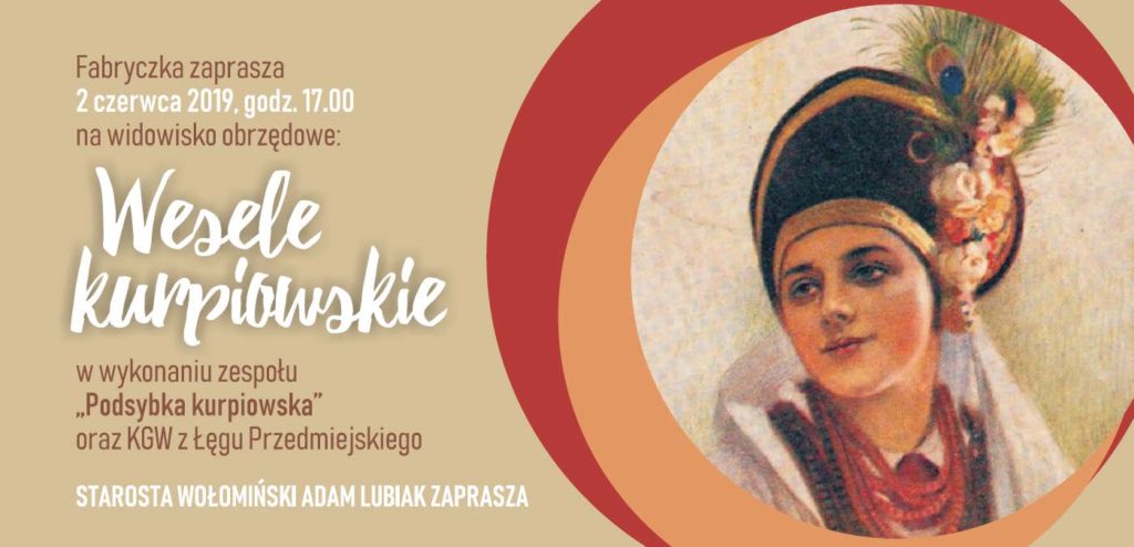 Starosta Wołomiński Adam Lubiak serdecznie zaprasza mieszkańców powiatu na widowisko obrzędowe „Wesele kurpiowskie”, które odbędzie się 2 czerwca w Fabryczce przy ul. Orwida 20 w Wołominie.