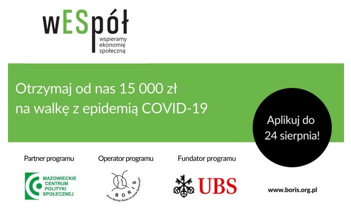 Celem programu jest minimalizowanie lub przeciwdziałanie skutkom epidemii COVID-19 w społecznościach lokalnych, np. poprzez działania na rzecz osób lub instytucji. Kwota dofinansowania to 15.000 zł dla jednego projektu.