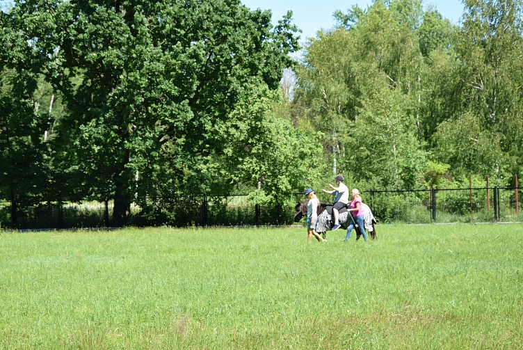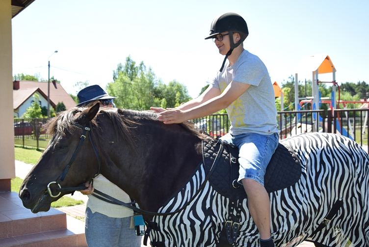 Poprzednie dwie edycje projektu ( ?Przytul konia podaj łapę psu?, ?Siła konia, wierność psa?), które realizowane były w roku 2016 oraz 2017, cieszyły się ogromną popularnością wśród uczniów Zespołu Szkół Specjalnych w Ostrówku. Hipoterapia jako baza wspomagająca ogólny psychoruchowy rozwój uczniów pomogła normalizować ich napięcie mięśniowe (poprzez łagodne, rytmiczne kołysanie się podczas chodu konia oraz ciepło jego ciała), minimalizowała zaburzenia emocjonalne, nauczyła umiejętności nawiązywania poprawnych relacji, kontaktów społecznych i dawała poczucia bezpieczeństwa. Podczas zajęć uczniowie usprawniali także równowagę, koordynację wzrokowo-ruchową, a także orientację w przestrzeni. Uczestnicy zajęć mogli w pełni skorzystać z kontaktu z naturą (m.in. pogłaskać czy przytulić konia), co przyniosło im wiele radości. Takie zajęcia wzmocniły ich więź ze zwierzęciem, nauczyły odpowiedzialności i troski o zwierzę. Widać było, że kontakt z koniem pozytywnie wpłynął na ich samopoczucie, ale przede wszystkim dawał dużo radości i szczęścia. Był to moment relaksacji i wyciszenia. Kluczową rolę w terapii odgrywało ciepłe i życzliwe podejście terapeutki do wszystkich uczniów. Pani Agnieszka potrafiła wspaniale dotrzeć do dzieci, zainteresować ich, rozbudzić w nich ciekawość, pomóc pokonywać własne słabości i lęki.