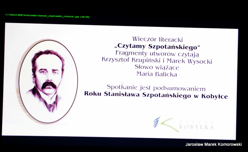 W sobotni wieczór 25 marca o godz. 18:00 w Miejskim Ośrodku Kultury odbył się wieczór literacki pt. ?Czytamy Szpotańskiego?. Fragmenty utworów Stanisława Szpotańskiego czytali Krzysztof Krupiński – polski aktor teatralny, filmowy i dubbingowy, pisarz, poeta oraz Marek Wysocki ? aktor, reżyser oraz kompozytor. Za słowo wiążące odpowiedzialna była Maria Balicka ? honorowy obywatel Miasta Kobyłka. Cały wieczór odbył się w miłej, kameralnej atmosferze.
