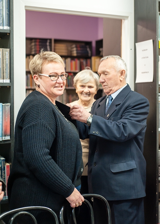 Nie zabrakło też innych miłych niespodzianek. Dorota Kaźmierska, dyrektor Miejskiej Bibliotece Publicznej w Ząbkach została uhonorowana Odznaką za Zasługi dla Związku Kombatantów RP i Byłych Więźniów Politycznych. Legitymację i odznakę wręczył sierż. Stefan Załęski, prezes ząbkowskiego Koła Związku Kombatantów RP i Byłych Więźniów Politycznych.