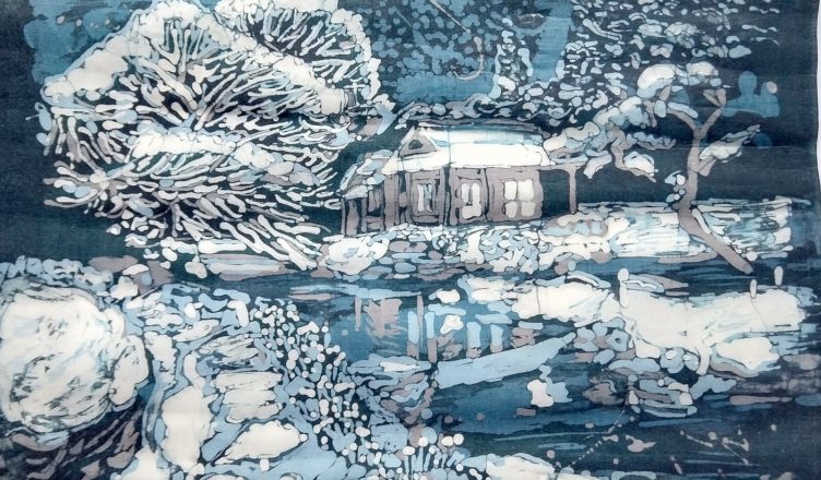 ?Batik jest bardzo starą techniką barwienia tkanin, która wykorzystuje pewną właściwość wosku pszczelego. Miejsca pokryte gorącym woskiem nie poddają się farbowaniu. Do wykonania naszych obrazów używamy bawełnianego płótna, na którym nanosimy nasz projekt obrazu, a następnie zanurzamy go w farbach zaczynając od najjaśniejszych. Po każdym zanurzeniu suszymy i malujemy woskiem te fragmenty obrazu, które chcemy zachować właśnie w tym kolorze. Kładziemy kolejny barwnik, znów suszymy i zabezpieczamy woskiem pożądane partie obrazu, aż osiągniemy zadowalający efekt. Lubimy tu przychodzić,bo to miejsce jest dla nas bardzo przyjazne? ? mówi pani Elżbieta.