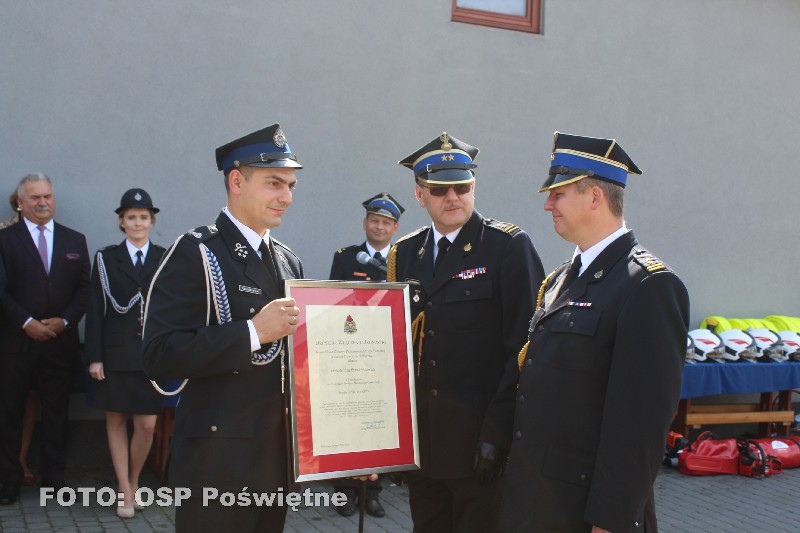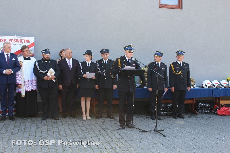 Meldunek o rozpoczęciu uroczystości od mł. bryg. Kamila Haczkura przyjął bryg. Andrzej Wysocki Komendant Powiatowy Państwowej Straży Pożarnej w Wołominie. Następnie odegrano Hymn Państwowy Mazurek Dąbrowskiego, a po przywitaniu gości przez Komendanta Powiatowego Państwowej Straży Pożarnej w Wołominie bryg. Andrzeja Wysockiego nastąpiła uroczystość przekazania Decyzji Komendanta Głównego PSP o włączeniu jednostki OSP Poświętne do KSRG.
