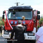 Podczas uroczystej zbiórki poświęcenia nowego wozu bojowego dokonał Kapelan Powiatowy – ks. Piotr Połomski i Proboszcz Parafii w Poświętnem – ks. Robert Kalisiak.