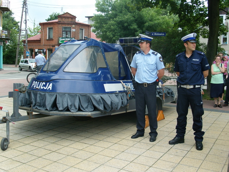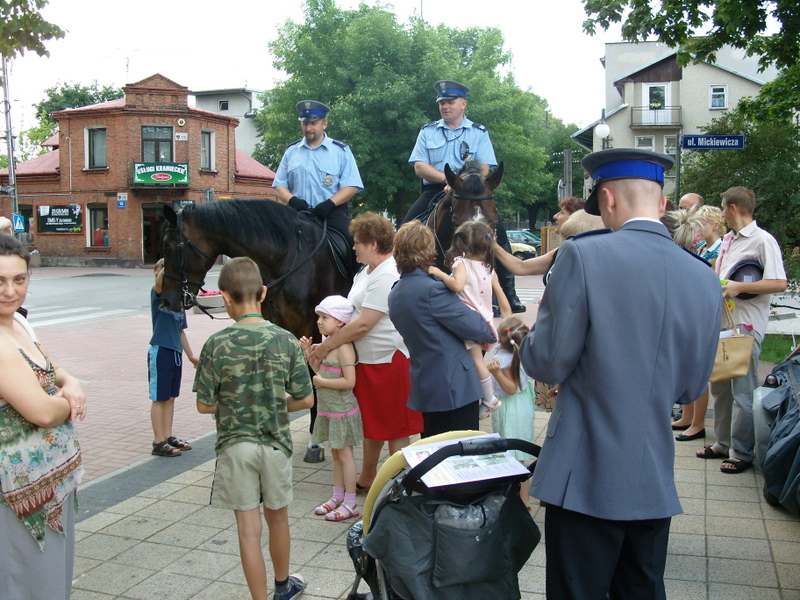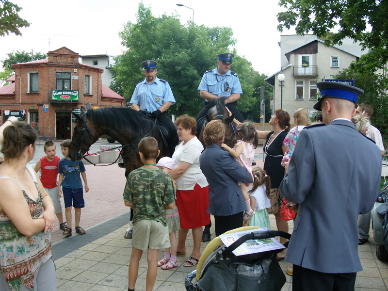 Obchody 90 rocznicy powołania Policji w Wołominie na Placu 3-go Maja pozwoliły Policjantom przygotować wiele atrakcji dla zaproszonych gości i wszystkich mieszkańców. Z tej okazji na placu pojawiły się policyjne radiowozy, motocykle, poduszkowiec z Komisariatu Rzecznego Policji, oraz patrol konny i policyjny pies. Swoje stosika zaprezentował Wydział Ruchu Drogowego i Wydział Prewencji KPP Wołomin. Każdy chętny mógł sprawdzić jak ważnym elementem są zapięte pasy bezpieczeństwa, zjeżdżając na specjalnej pochylni, z okazji tej jako pierwszy skorzystał Burmistrz Miasta Wołomin Pan Jerzy Mikulski. Policjanci zorganizowali wiele konkursów dla dzieci i młodzieży, oczywiście z atrakcyjnymi nagrodami.
