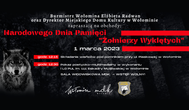 Serdecznie zapraszamy do wzięcia udziału w gminnych obchodach i wspólnie uczczenia pamięci o Żołnierzach Wyklętych w Wołominie – zachęca ratusz