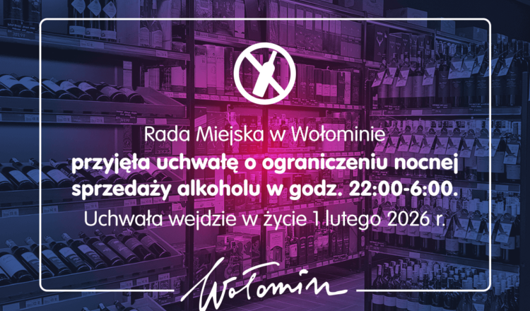 Od 1 lutego 2026 roku na terenie gminy Wołomin będzie obowiązywało ograniczenie sprzedaży alkoholu w godzinach 22:00-6:00. 27 listopada 2025 roku Rada Miejska w Wołominie przyjęła stosowną uchwałę w tej sprawie.