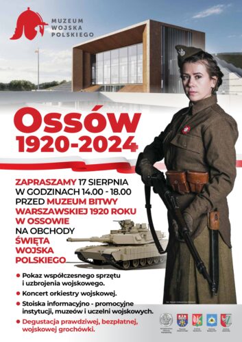 Elżbieta Radwan Burmistrz Wołomina, wspólnie z Muzeum Wojska Polskiego serdecznie zapraszają na uroczyste obchody Święta Wojska Polskiego. Wydarzenie odbędzie się 17 sierpnia w godzinach 14:00 – 18:00 przed Muzeum Bitwy Warszawskiej 1920 roku w Ossowie. To wyjątkowa okazja do oddania hołdu naszym bohaterom oraz do uczestnictwa w atrakcjach przygotowanych specjalnie na tę okazję.