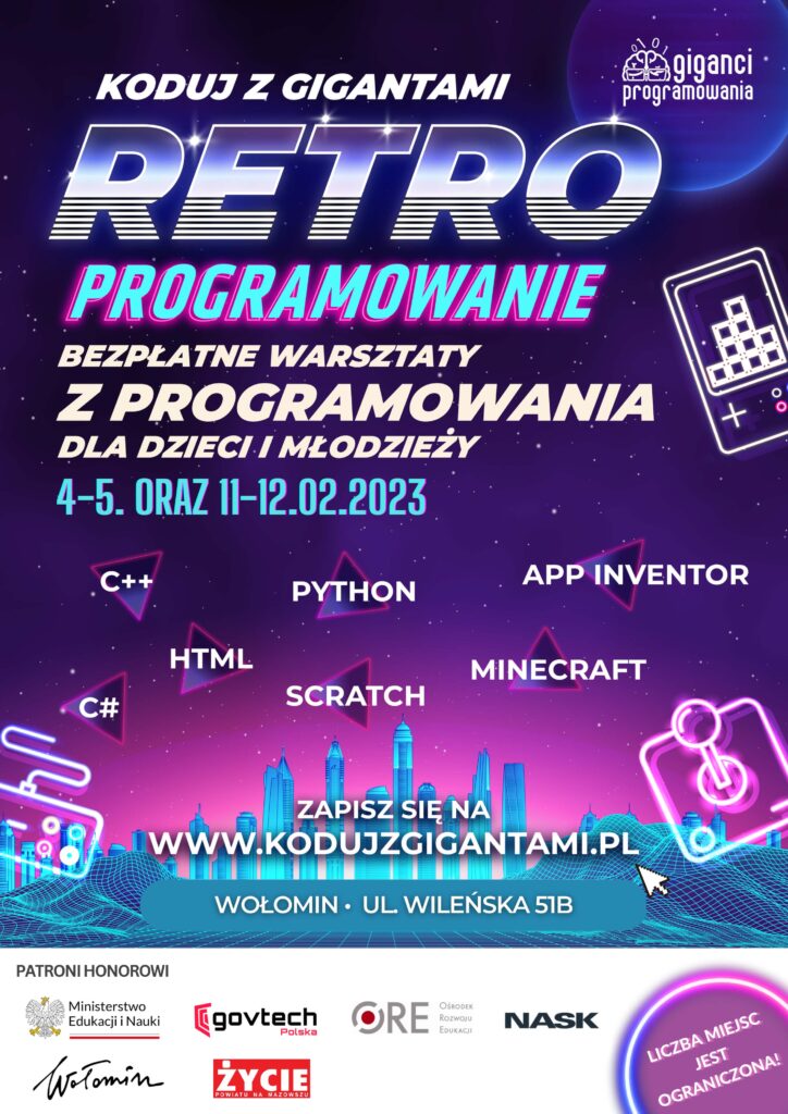 Wystartowały zapisy na „Koduj z Gigantami” – bezpłatne warsztaty z programowania dla uczniów szkół podstawowych i średnich, organizowane w ramach ogólnopolskiej, społecznej akcji edukacyjnej. Motywem przewodnim warsztatów będzie Retro-programowanie.