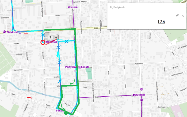 W związku z pracami nad przebudową ulicy Leszczyńskiej czasowej zmianie ulega trasa linii autobusowej L36. Od czwartku 10.11.2022 r., od początku kursowania, autobusy linii L36 zostają skierowane na poniższą trasę objazdową: