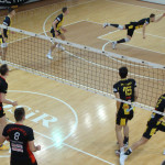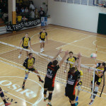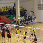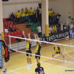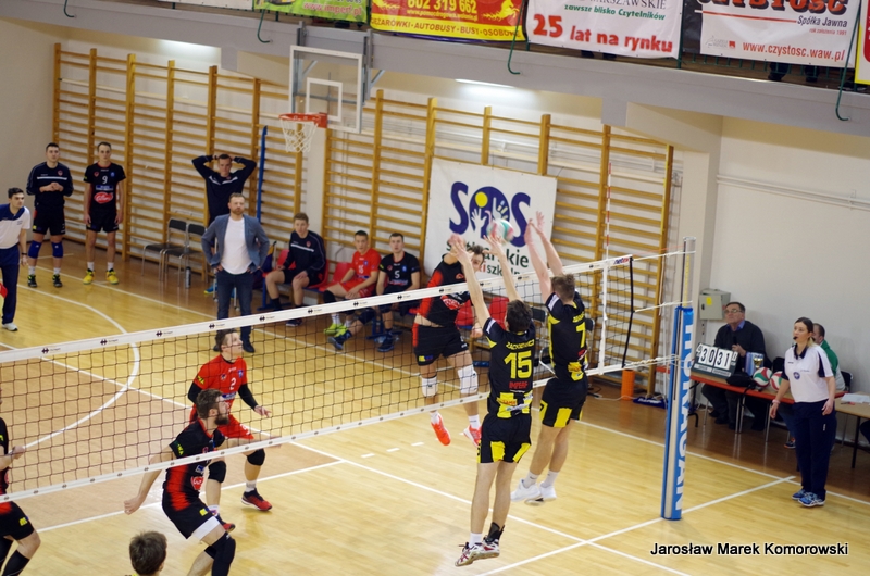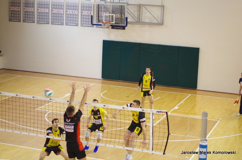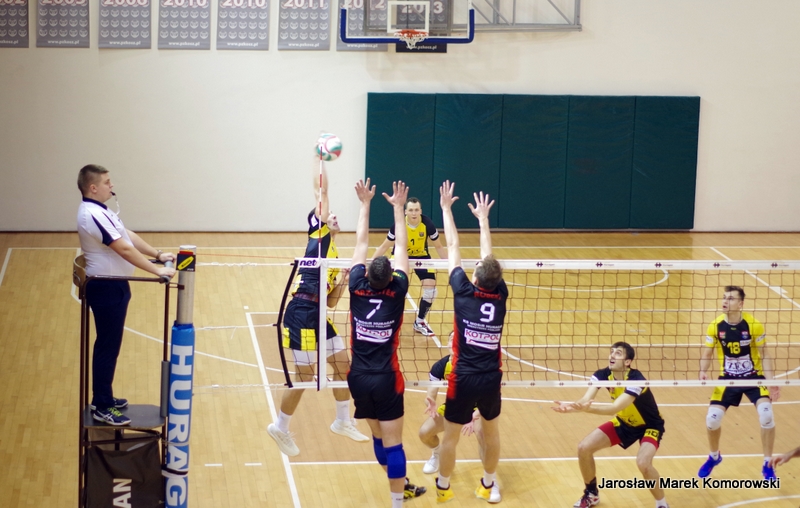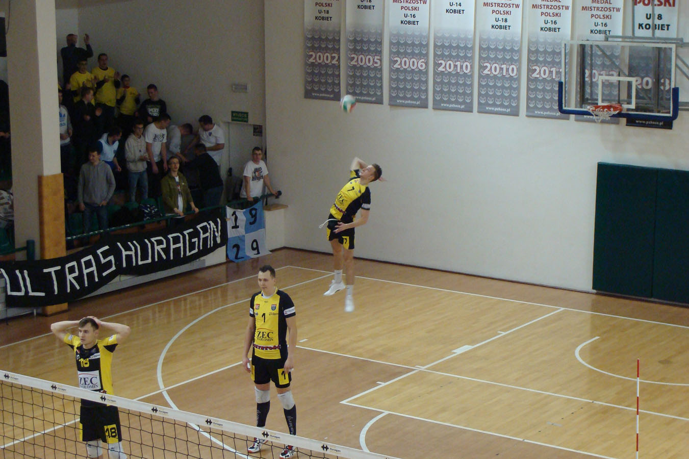 Na wstępie pierwszego seta wołominianom udało się uzyskać kilkupunktową przewagę, którą utrzymali do połowy partii. Jednakże goście gonili wynik i doprowadzili do remisu 17:17. Od tego momentu obie drużyny szły łeb w łeb do końca seta. Przy stanie 22:22 Przemysław Gniewek przeprowadził atak z lewego skrzydła, po którym gospodarze wyszli na prowadzenie. W kolejnej akcji zapunktował Radosław Szymański i było 24:22. Gościom udało się wybronić pierwszą piłkę setową. W tym momencie trener Tomasz Rosa poprosił o czas dla swojego zespołu. Po wznowieniu gry Paweł Szymaniak z prawego skrzydła wbił ?gwoździa?, co przypieczętowało triumf wołominian w pierwszej odsłonie meczu.