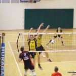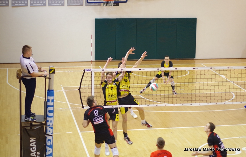 Jedynie na początku trzeciej partii siatkarze z Międzyrzeca Podlaskiego nawiązali równą walkę z miejscową ekipą. Punkt zwrotny nastąpił w momencie, kiedy na tablicy wyświetlił się wynik 11:10. Od tej chwili prowadzili już tylko gospodarze, systematycznie zwiększając przewagę. Przy stanie 19:14 Łukasz Wasąg, trener gości, poprosił o drugą w tym secie przerwę dla swojego zespołu. Na niewiele to się zdało, bo po kilku kolejnych akcjach przewaga Wołomina jeszcze wzrosła. W końcówce seta, po ataku Roberta Kępki, gospodarze prowadzili 23:16. Następnie 17. punkt dla gości zdobył Patryk Sobieszczak. W pole zagrywki gości udał się Tomasz Nowacki, który zaserwował w siatkę. I wołominianie mieli piłkę setową. W ostatniej akcji meczu asa serwisowego posłał Bartłomiej Bujniak.