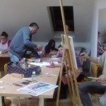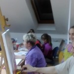 Spotkanie, które odbyło się w miniony piątek dedykowane było głównie dzieciom, którym w zajęciach towarzyszyli ich dorośli opiekunowie – dziadkowie bądź rodzice. Prowadził je Mieczysław Bugnacki, który opowiadał o podstawach malowania, rysunku, materiałach i kolorach. Niewątpliwą atrakcją tego spotkania była możliwość obserwowania w jaki sposób malują malarze parający się tym od wielu lat: Piotr Stolarski z podwarszawskich Ząbek i Ewa Ważny z Żorów ze Śląska.