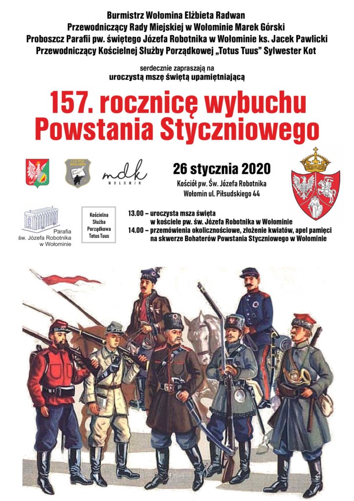 Wołomińskie obchody upamiętniające 157. rocznicę wybuchu Powstania Styczniowego odbędą się 26 stycznia 2020 w kościele pw. św. Józefa Robotnika w Wołominie.
