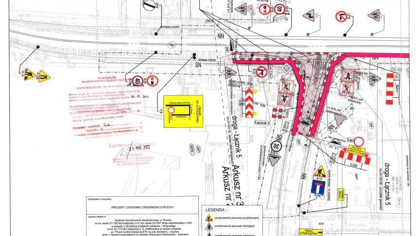 W związku z budową wiaduktu kolejowego w Tłuszczu, wykonawca prac informuje, iż w dniach od 25 kwietnia 2022r. (poniedziałek) do 27 kwietnia 2022r. (środa) wprowadzona zostanie czasowa organizacja ruchu.
