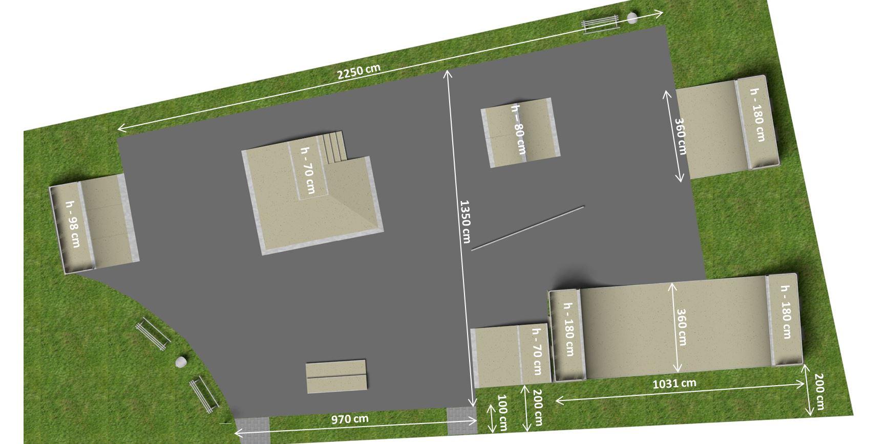 Planujemy znaczne powiększenie powierzchni skateparku, zakup dodatkowych elementów oraz wykorzystanie wyposażenia obecnie funkcjonującego obiektu.