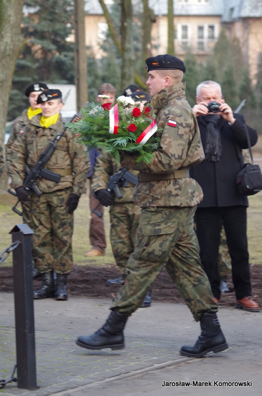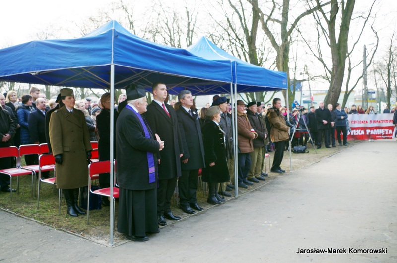 W kościele Matki Bożej Królowej Polski odprawiona została Msza święta w intencji bohaterów. Zgromadzeni przemaszerowali pod pomnik przy ul. Piaskowej znajdujący się w miejscu dawnej NKW-dowskiej katowni. Po przemówieniach burmistrz Elżbiety Radwan, posła Piotra Uścińskiego i starosty Kazimierza Rakowskiego nastąpił uroczysty apel poległych zakończony salwą honorową. Złożono wieńce.