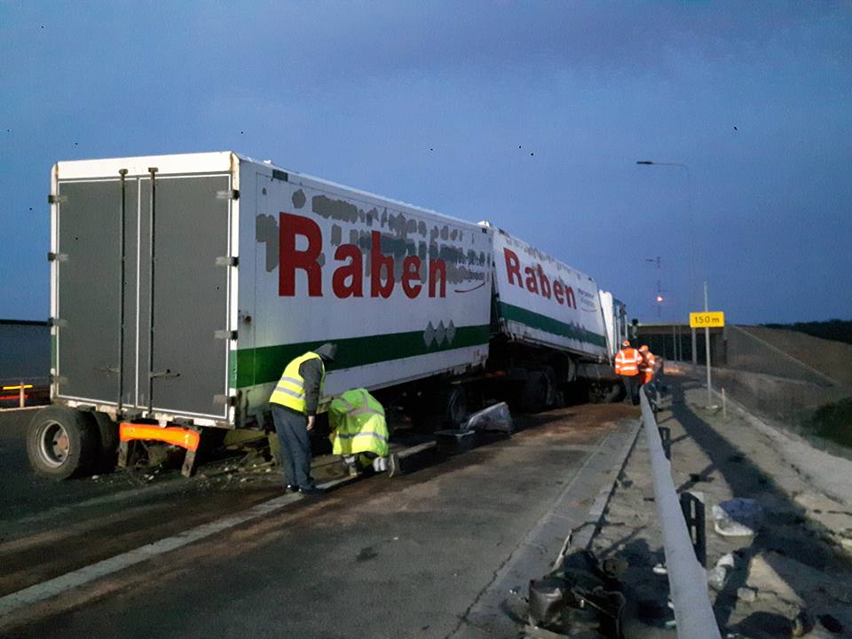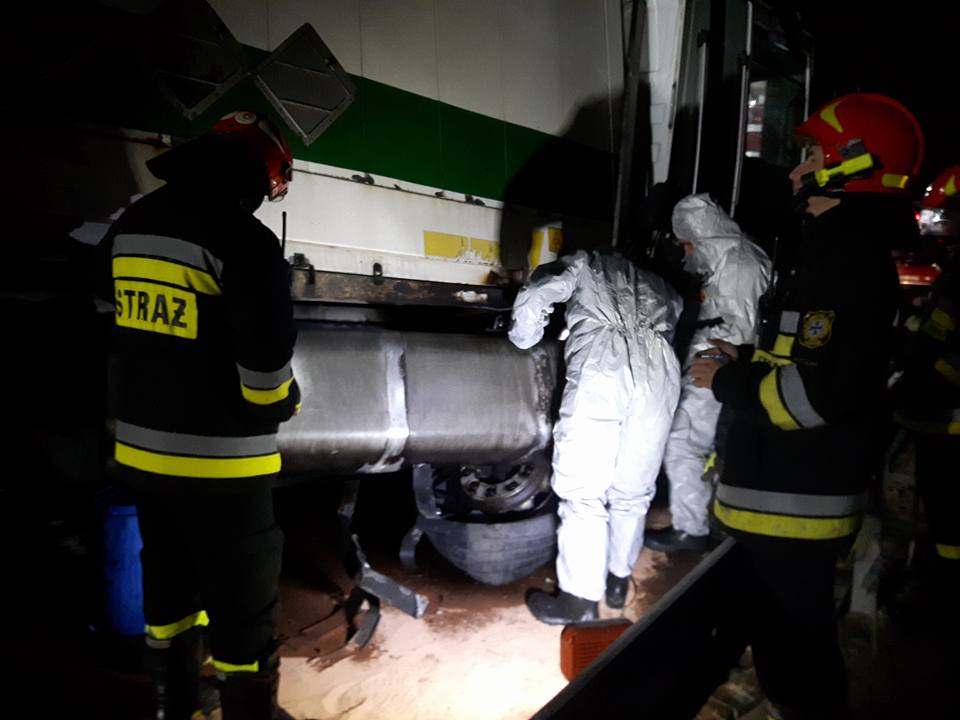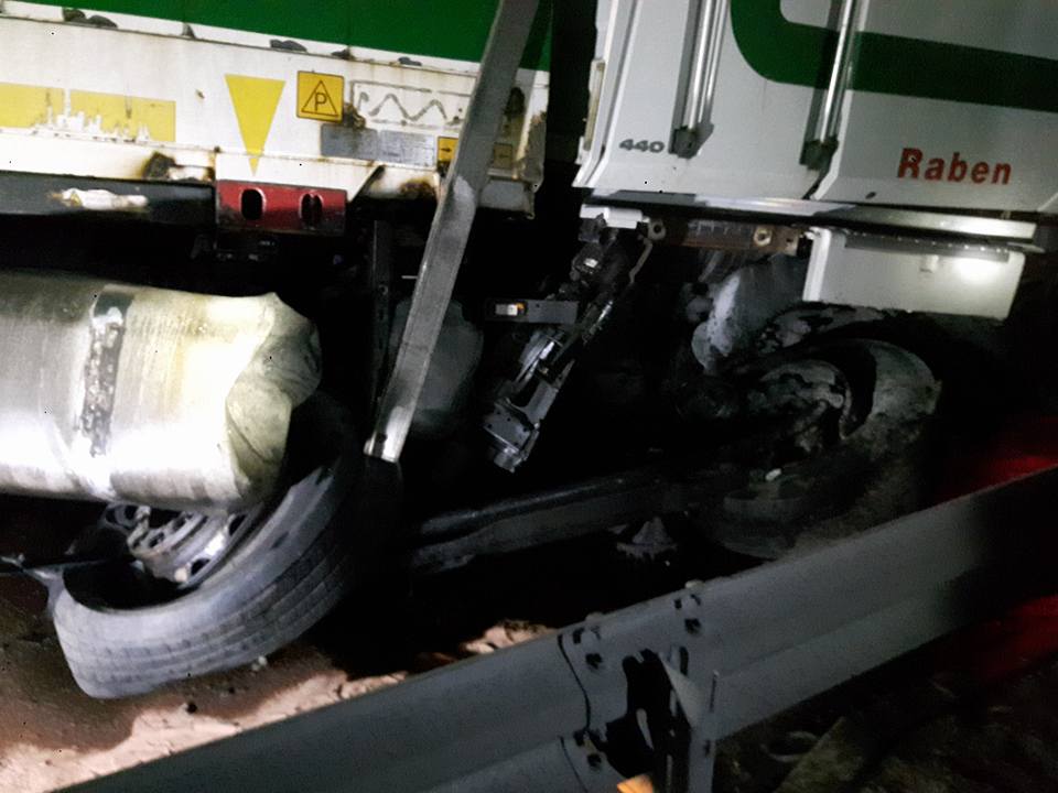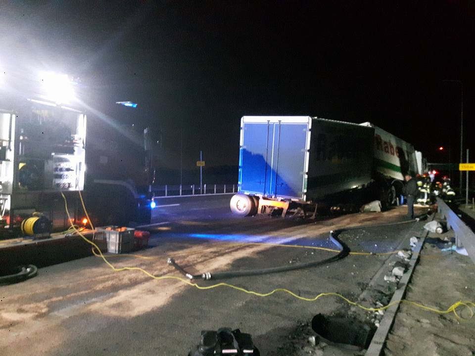 Około godziny 00:30 w nocy z czwartku na piątek doszło do wypadku na trasie S8. Samochód ciężarowy uderzył w betonowe osłony, w wyniku czego zostały urwane osie podwozia. Doszło do wycieku paliwa.