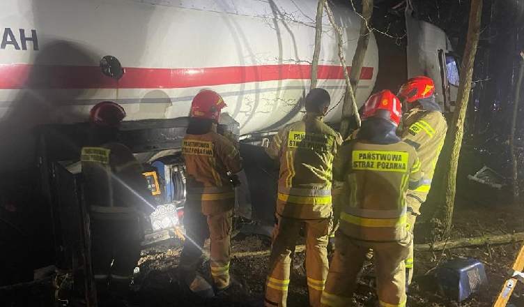 Jak informuje Komenda Wojewódzka PSP w Warszawie, w piątek 24 marca cysterna przewożąca gaz propan-butan wypadła z drogi i wjechała w las. Kierowca cysterny doznał urazu głowy i został przetransportowany do szpitala.