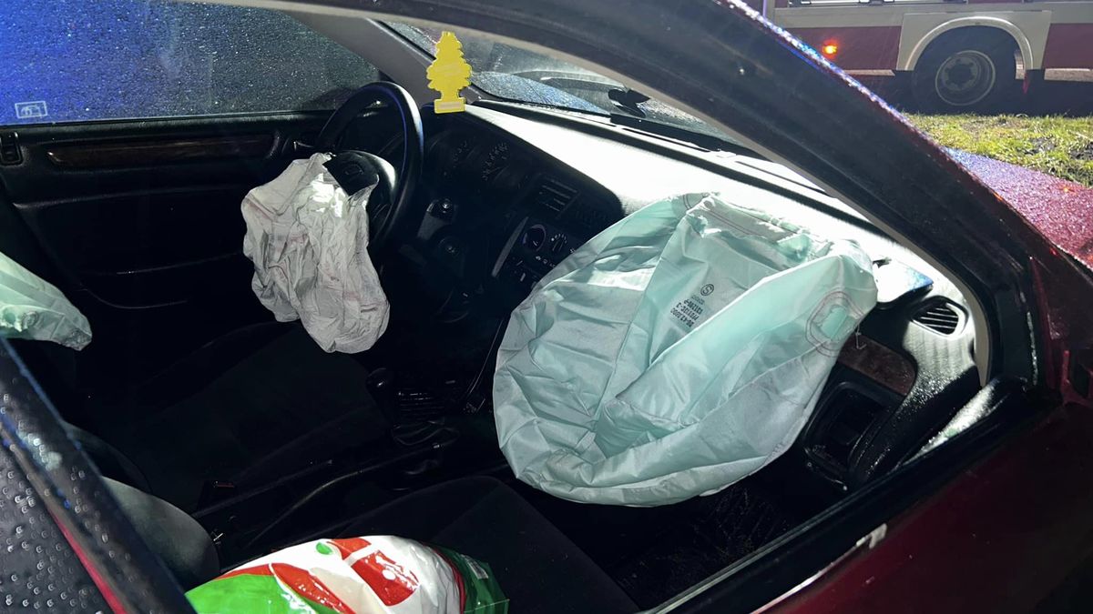 W wyniku zderzenia osobówki z ciężarówką do szpitala został przewieziony pasażer hondy.