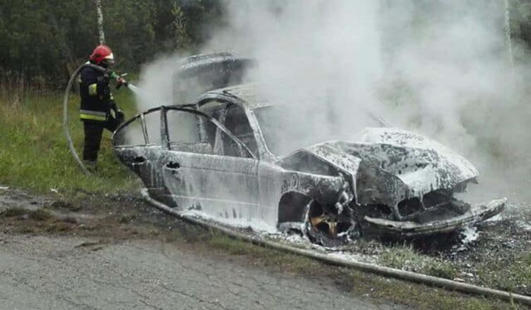 Wypadek i pożar samochodu w okolicach Zabrańca