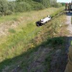 W wyniku zdarzenia samochód osobowy znajdował się w przydrożnym rowie. Osoby podróżujące autami po przebadaniu przed ZRM pozostały na miejscu zdarzenia. W trakcie prowadzenia działań jeden pas ruchu zablokowany.