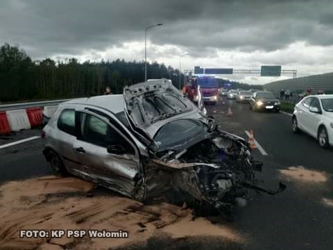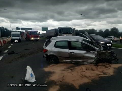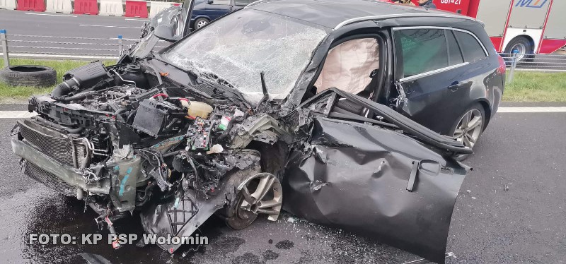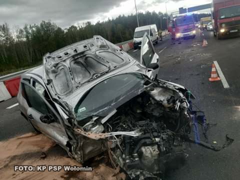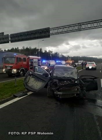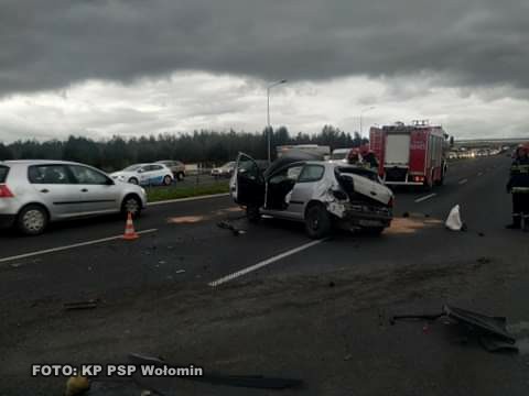 Zdarzenie miało miejsce ok. godz. 15.50. Do Dyżurnego Stanowiska Kierowania Komendanta Powiatowego Państwowej Straży Pożarnej w Wołominie wpłynęło zgłoszenie o wypadku drogowym na drodze ekspresowej S-8 na wysokości miejscowości Nadma. Po dojeździe na miejsce wypadku ustalono, że doszło do zdarzenia z udziałem dwóch samochodów osobowych. Jeden samochód znajdował się na skrajnym pasie trasy S-8 w stronę Białegostoku, a drugi na środkowym pasie w stronę Warszawy. Ruch na trasie S-8 odbywał się po jednym pasie w obu kierunkach. Mężczyzna kierujący jednym z pojazdów został zakleszczony wewnątrz pojazdu. Działania JOP polegały na zabezpieczeniu miejsca zdarzenia i wyważeniu drzwi pojazdu w celu wykonania dostępu do poszkodowanego. Po wykonaniu dostępu rannego umieszczono na desce ortopedycznej i przekazano Zespołowi Ratownictwa Medycznego. Następnie odłączono zasilanie w pojazdach i zebrano płyny eksploatacyjne przy użyciu sorbentu. Działania służb trwały przez około 2 godzin. W działaniach uczestniczyli: JRG Wołomin i OSP Radzymin, dwa Zespoły Ratownictwa Medycznego i Policja.