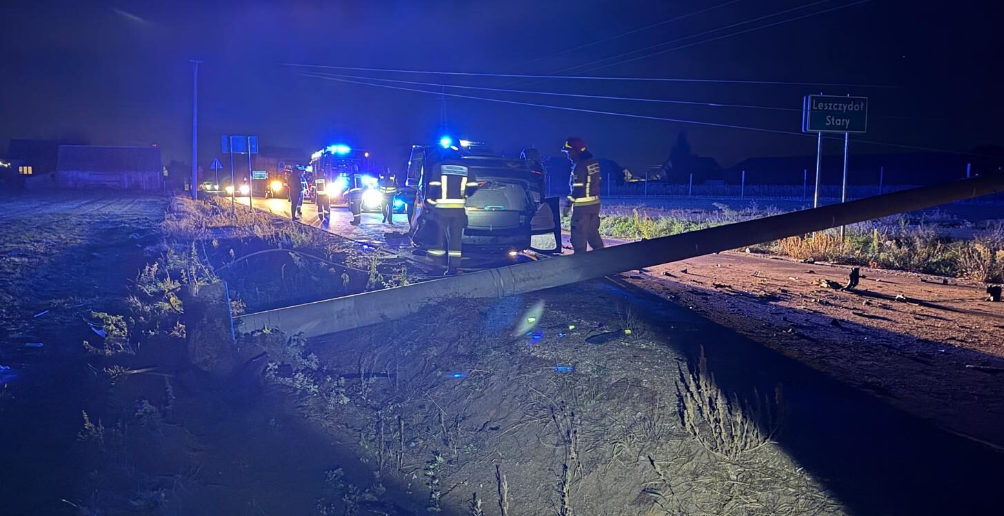 Wypadek w Leszczydole Starym – samochód ściął w słup energetyczny