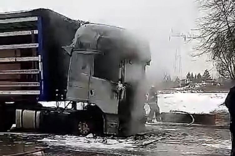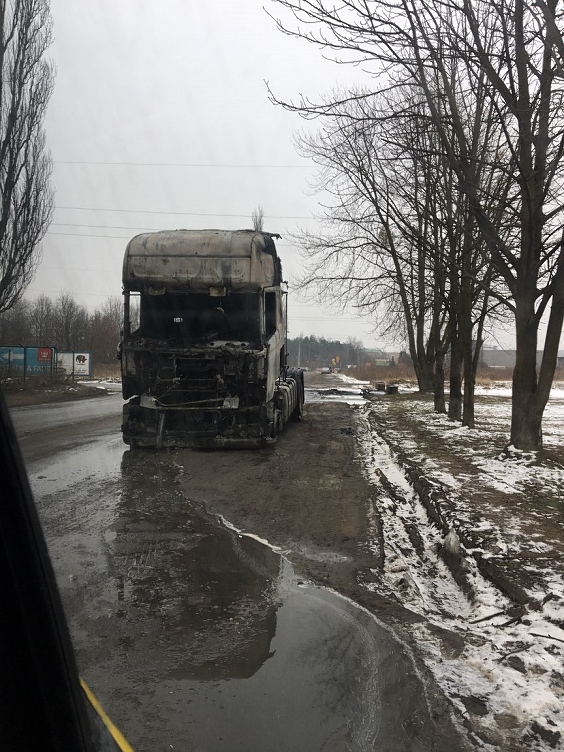 W tym samym czasie spaleniu uległ ciągnik siodłowy na ul. Okólnej w Markach.