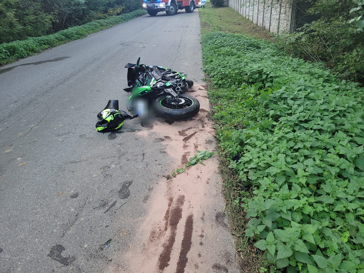 Policjanci z Makowa Maz. wyjaśniają okoliczności i przebieg zdarzenia drogowego z udziałem motocyklisty. Najprawdopodobniej przyczyną wypadku była nadmierna prędkość.