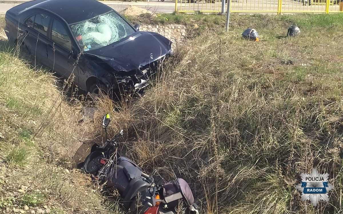 Oficer dyżurny Komendy Miejskiej Policji w Radomiu około godz. 8 otrzymał zgłoszenie o wypadku z udziałem motocyklisty w Bierwieckiej Woli. Jak wynika ze wstępnych ustaleń policjantów, 28-letni kierowca pojazdu Mercedes wyjeżdżając z drogi wewnętrznej najprawdopodobniej nie ustąpił pierwszeństwa 33-latkowi kierującemu motocyklem marki Honda.