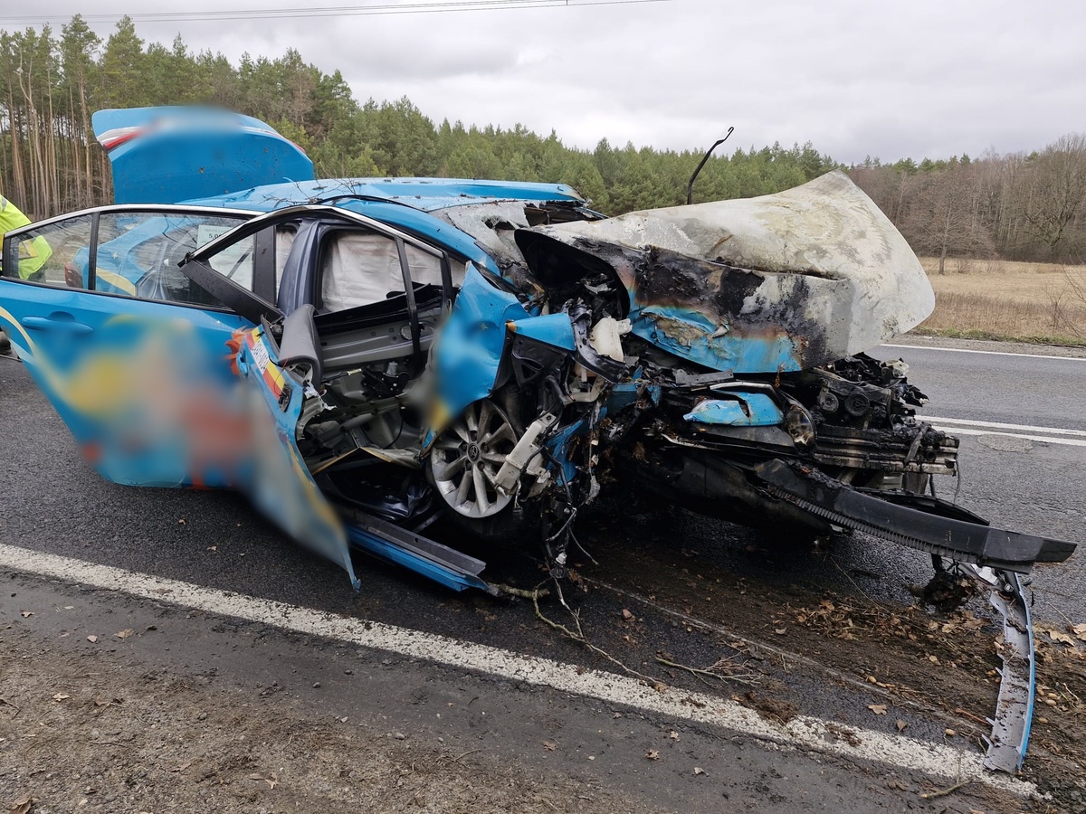 Do zdarzenia doszło wczoraj (27.03) tuż przed godziną 8 na drodze K-62 w Kamieńczyku. Jak wstępnie ustalili pracujący na miejscu zdarzenia policjanci z wyszkowskiej drogówki, kierujący toyotą (28 lat), podczas manewru wyprzedzania na łuku drogi, stracił panowanie nad pojazdem i zjechał do przydrożnego rowu, gdzie uderzył w drzewo, w wyniku czego pojazd którym się poruszał stanął w płomieniach. Pomocy rannemu mężczyźnie, jeszcze przed przybyciem służby ratunkowych, udzielili świadkowie tego brawurowego zdarzenia, którzy wydostali mężczyznę na zewnątrz płonącego pojazdu. 28-latek z poważnymi obrażeniami ciała został przetransportowany do szpitala. Kierujący był trzeźwy. W tej sprawie policjanci prowadzą dalsze postępowanie.