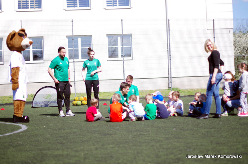 Dodatkowo podczas sobotniego treningu dzieci odwiedził miś KAZEK, czyli maskotka Legii Warszawa, który ćwiczył dzielnie razem z dziećmi.