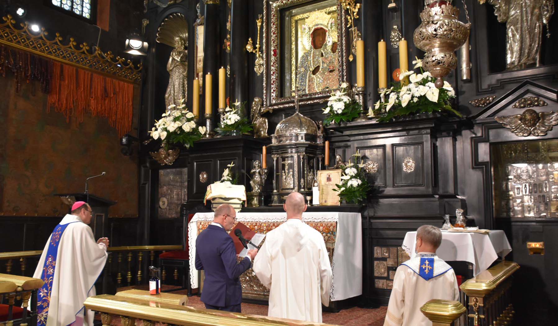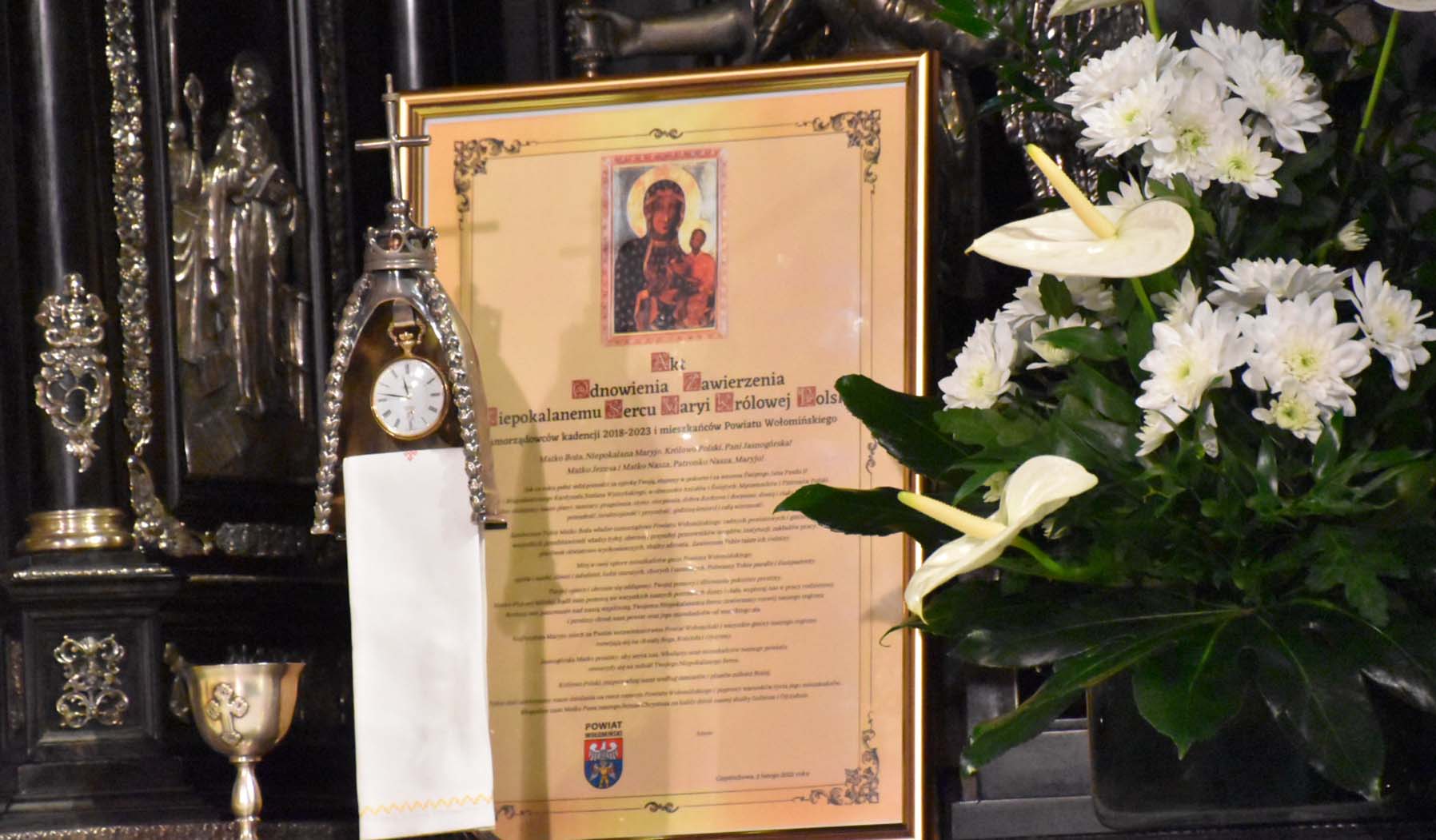 – Jak co roku pełni wdzięczności za opiekę Twoją, stajemy w pokorze i za wzorem Świętego Jana Pawła II i Błogosławionego Kardynała Stefana Wyszyńskiego, w obecności Aniołów i Świętych, Męczenników i Patronów Polski. (?) Zawierzam Tobie Matko Boża władze samorządowe Powiatu Wołomińskiego, radnych powiatowych i gminnych, wszystkich przedstawicieli władzy byłej, obecnej i przyszłej, pracowników urzędów, instytucji, zakładów pracy, placówek oświatowo-wychowawczych, służby zdrowia ? odczytał treść Aktu Odnowienia wicestarosta Piotr Borczyński.