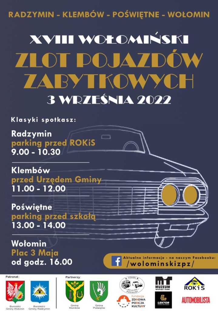 Serdecznie zapraszamy na Wołomiński Zlot Pojazdów Zabytkowych! W tym roku Organizatorzy przygotowali rajd turystyczny drogami powiatu wołomińskiego, z czego aż 4 checkpointy zlokalizowane zostały na terenie naszej gminy! Rajd odbędzie się 3 września!
