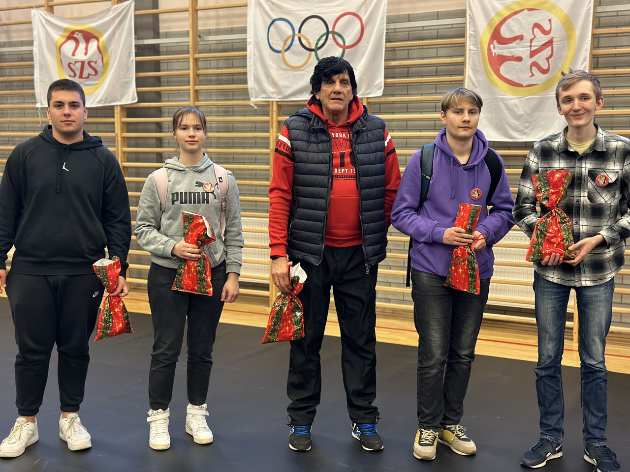 Dodatkową atrakcją zawodów było przybycie św. Mikołaja z czekoladowym upominkiem dla grzecznych dzieci i dorosłych.