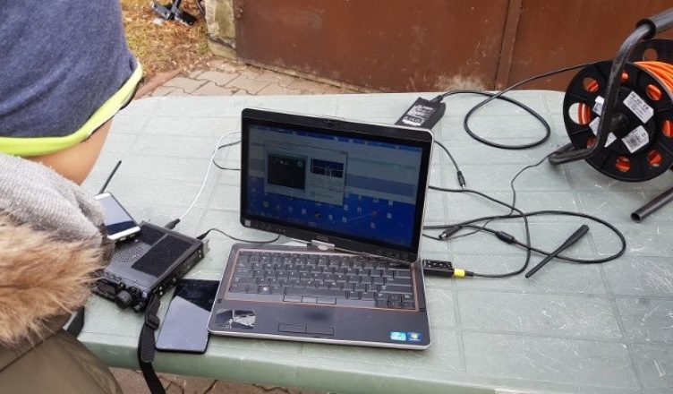 Powoli rysowały się zdjęcia nadane z kosmosu. Jeden z uczniów obraca anteną, inny z komórką (w telefonie ma aplikację pokazującą pozycję ISS względem obserwatora) pokazuje mu kierunek obrotu anteny, inni z zapartym tchem patrzą jak dzwięk zmienia się w obrazek.