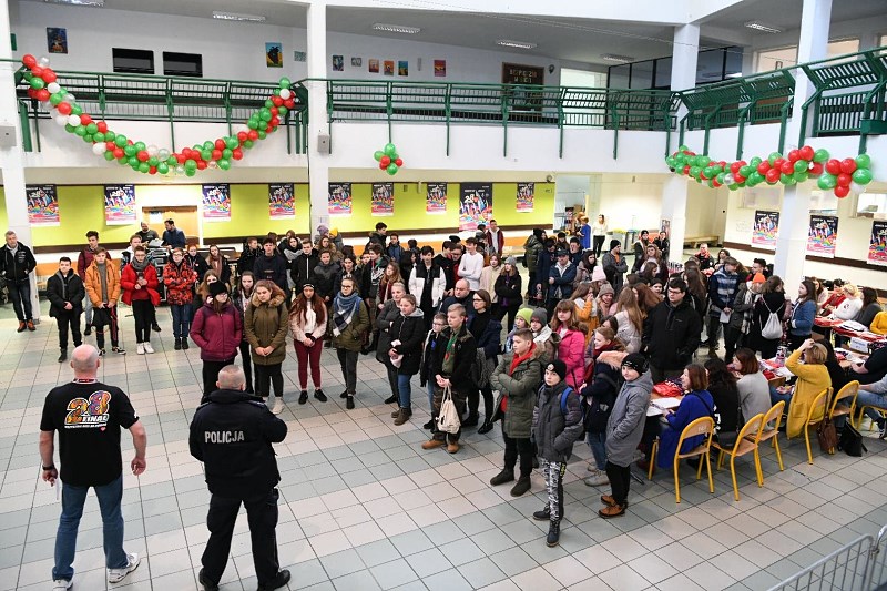 Głośno wyrażam wielki podziw i uznanie dla wszystkich wolontariuszy którzy w ten zimny i wietrzny dzień przez wiele godzin zabiegali o jak najlepsze wyniki zbiórki. Podziękowania dla wszystkich wspierających sam WOŚP jak i imprezy towarzyszące (policjantów, strażaków, harcerzy, ratowników medycznych, pracowników szkoły i rodziców, pracowników mok-u oraz urzędu miasta, biblioteki miejskiej). Głośne dziękuję dedykuję wszystkim, którzy witali wolontariuszy uśmiechem, dobrym słowem i zasilali ich puszki wrzucanymi banknotami i bilonem. Liczne licytacje ( koszulki i piłki ONICO Warszawa, Czarnych Radom ,Skry Bełchatów z podpisami zawodników, obrazy, vouchery oraz wiele podarowanych przez darczyńców fantów znalazły swoich nowych właścicieli) tworzyły koloryt właściwy dla 28 Finału.