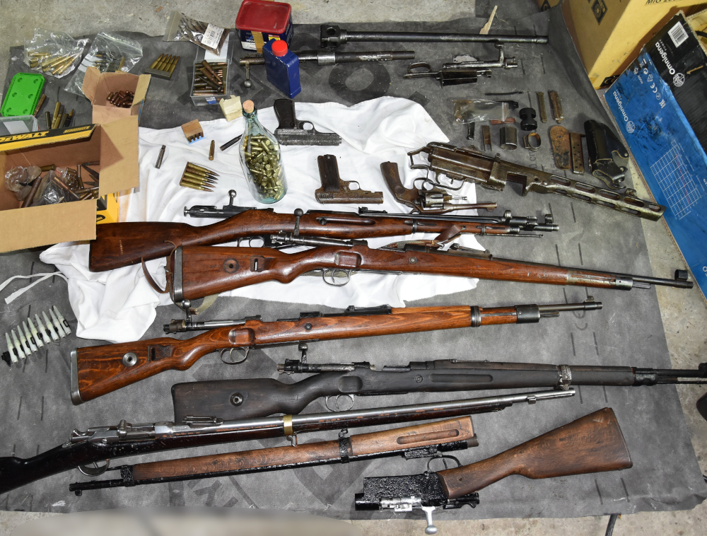 W trakcie intensywnych czynności operacyjnych kryminalni Komendy w Grozisku Mazowieckim uzyskali informację o mieszkańcu powiatu, który w domu mógł mieć broń bez zezwolenia. W mieszkaniu i piwnicy 59-latka policjanci znaleźli 2 pistolety, rewolwer, pistolet maszynowy, 4 zamki karabinowe, lufy i kilka magazynków do pistoletów maszynowych. Mężczyzna nie posiadał na nie żadnego zezwolenia i nie potrafił podać ich pochodzenia. Trafił do celi grodziskiej komendy.