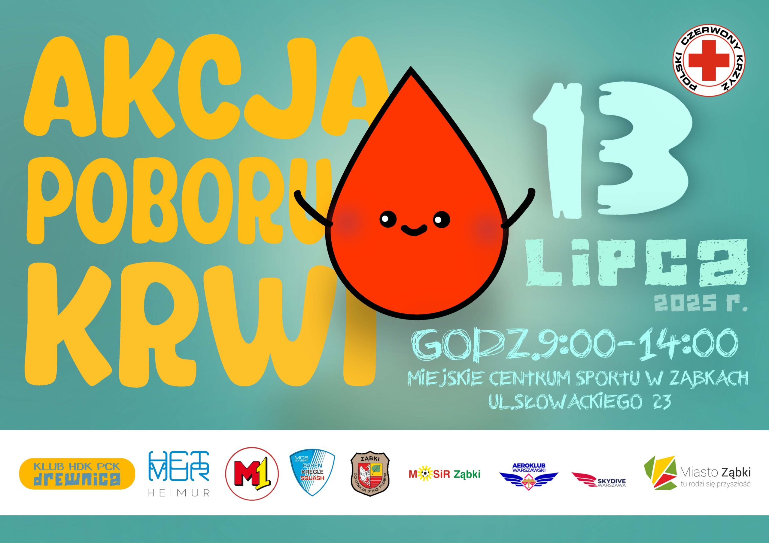 Zapraszamy mieszkańców do wzięcia udziału w akcji poboru krwi, która odbędzie się w dniu 13 lipca br. (niedziela), w godz. 9:00-14:00 przed Miejskim Centrum Sportu w Ząbkach (BASEN), przy ul. Słowackiego 23.