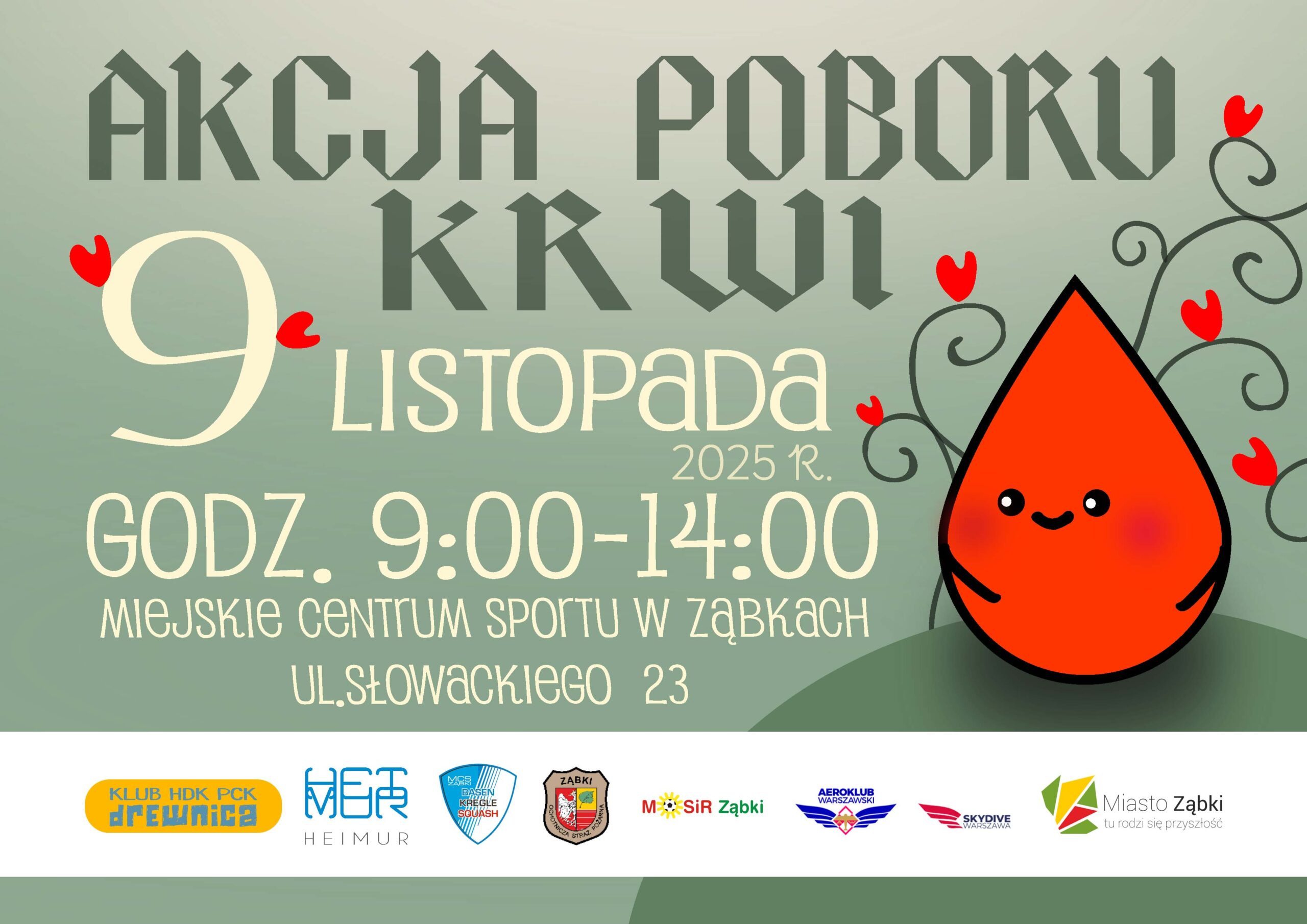 Stowarzyszenie HEIMUR zaprasza chętnych do akcji poboru krwi, która odbędzie się w dniu  9 listopada br. (niedziela),  w godz. 9:00-14:00 przed Miejskim Centrum Sportu w Ząbkach (BASEN), przy ul. Słowackiego 23.