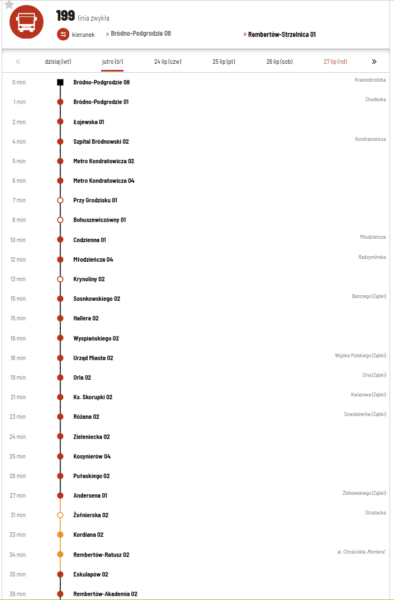199 ze względu na tabor przegubowy zmieni trasę w kierunku krańca „Strzelnica”.