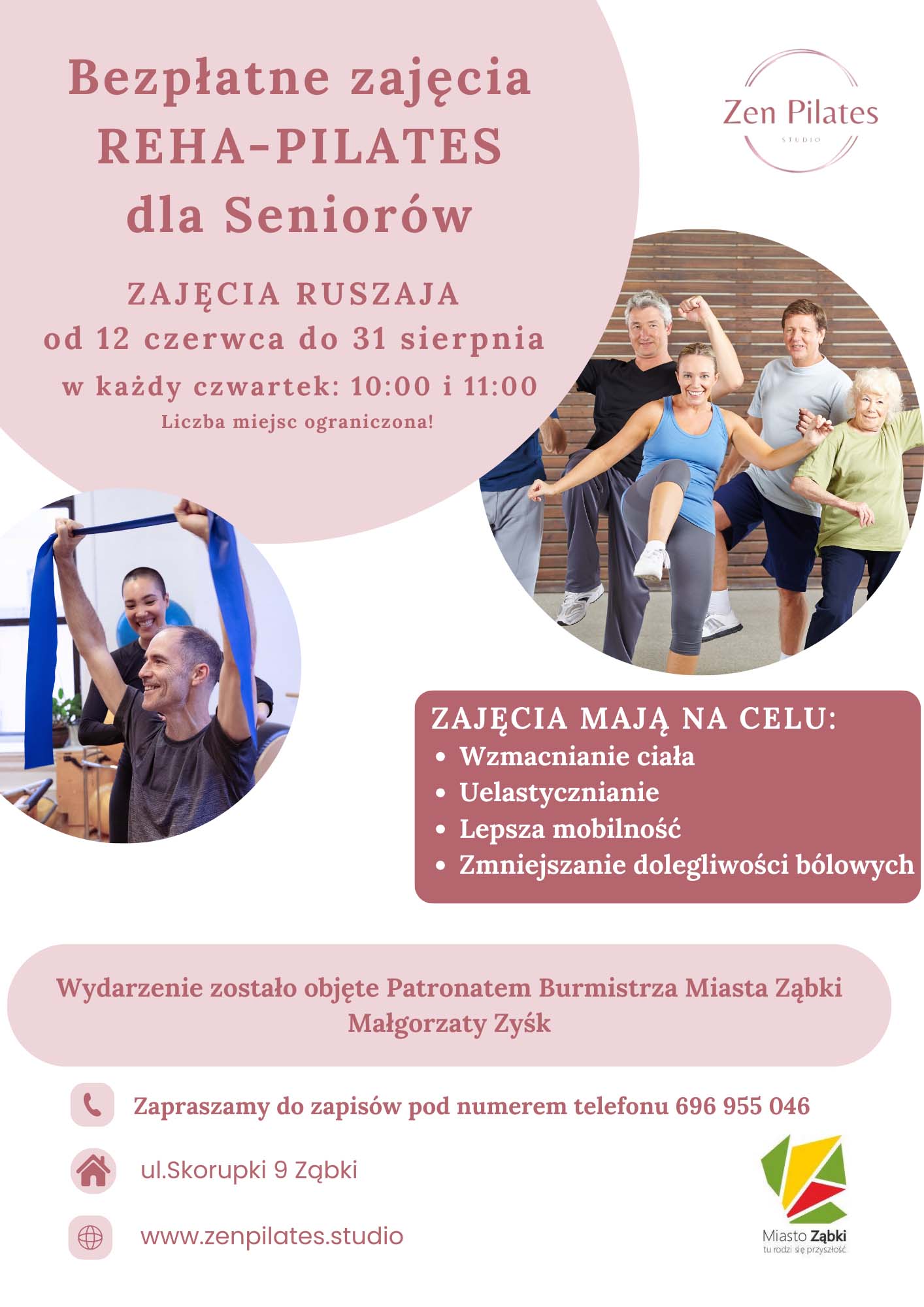 Drodzy Seniorzy 60+ od 12 czerwca 2024 r. w Zen Pilates Studio w Ząbkach ruszyły bezpłatne zajęcia Reha-Pilates!