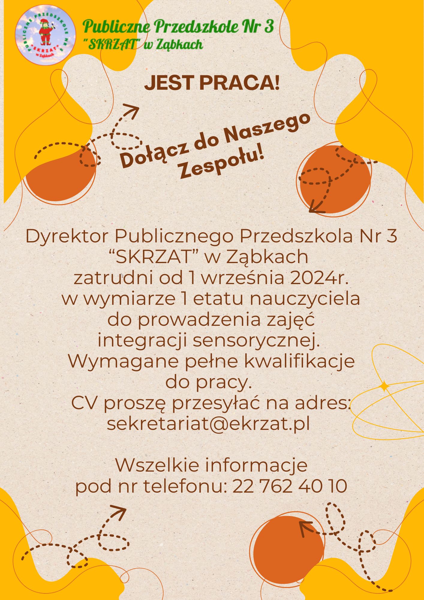 Ząbki – praca w PP3 dla nauczyciela do prowadzenia zajęć integracji sensorycznej