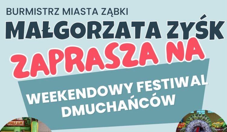 Burmistrz Miasta Ząbki zaprasza na WEEKENDOWY FESTIWAL DMUCHAŃCÓW w Szkole Podstawowej nr 4 przy ul. Harcerskiej 9.